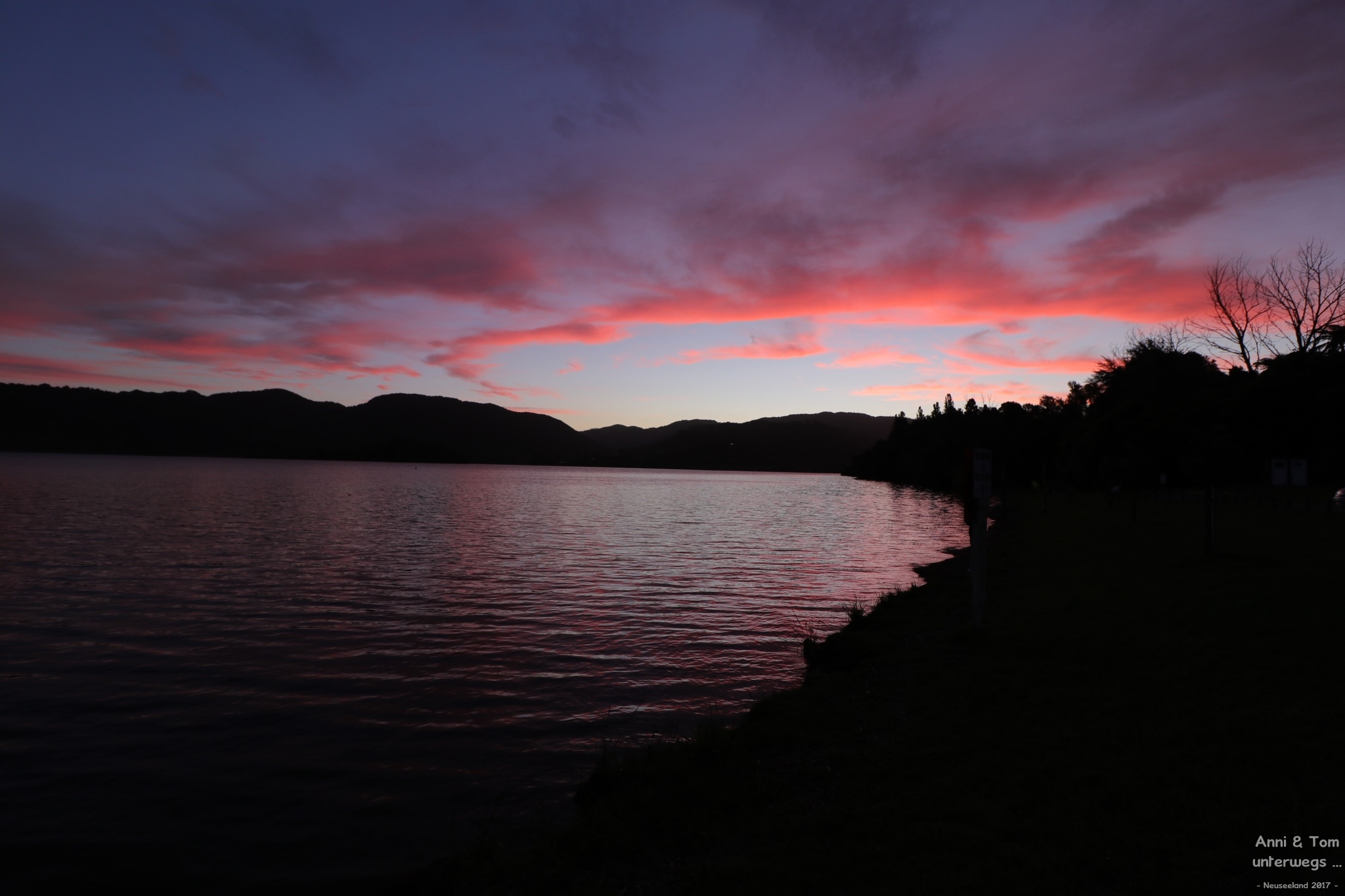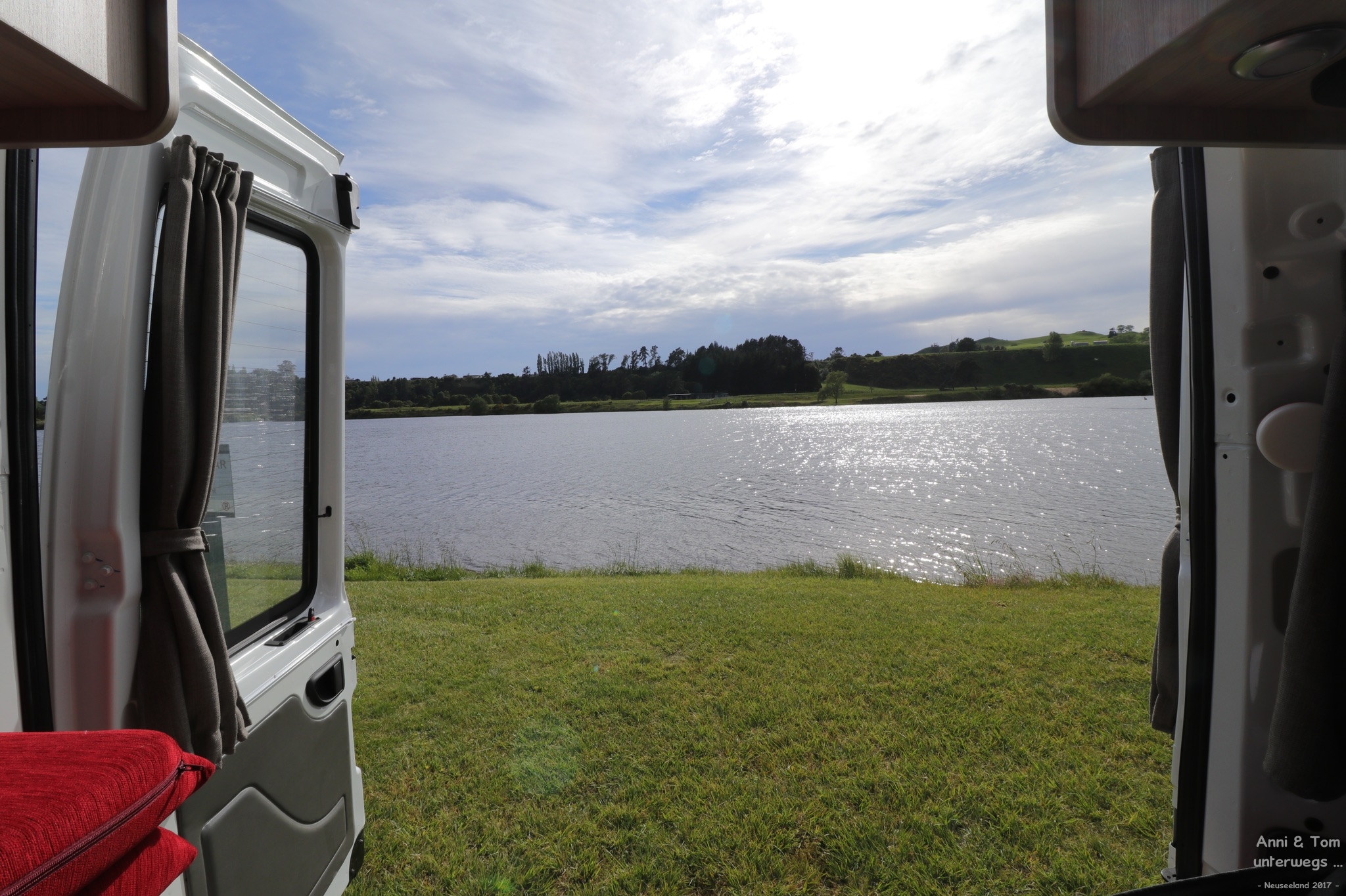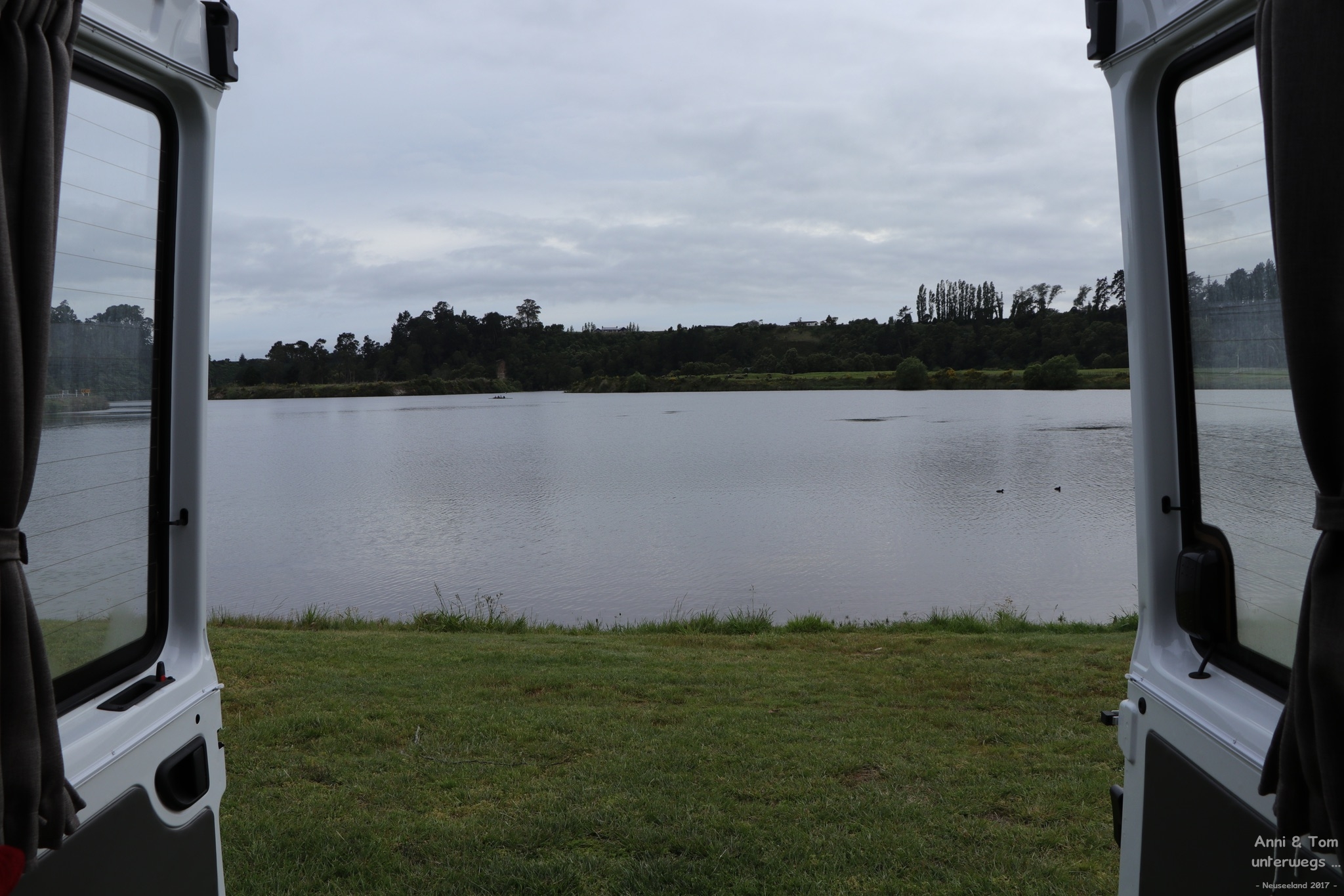 Nach einem kurzen Abstecher nach Rotorua finden wir unseren Schlafplatz am Lake Okarewa.
