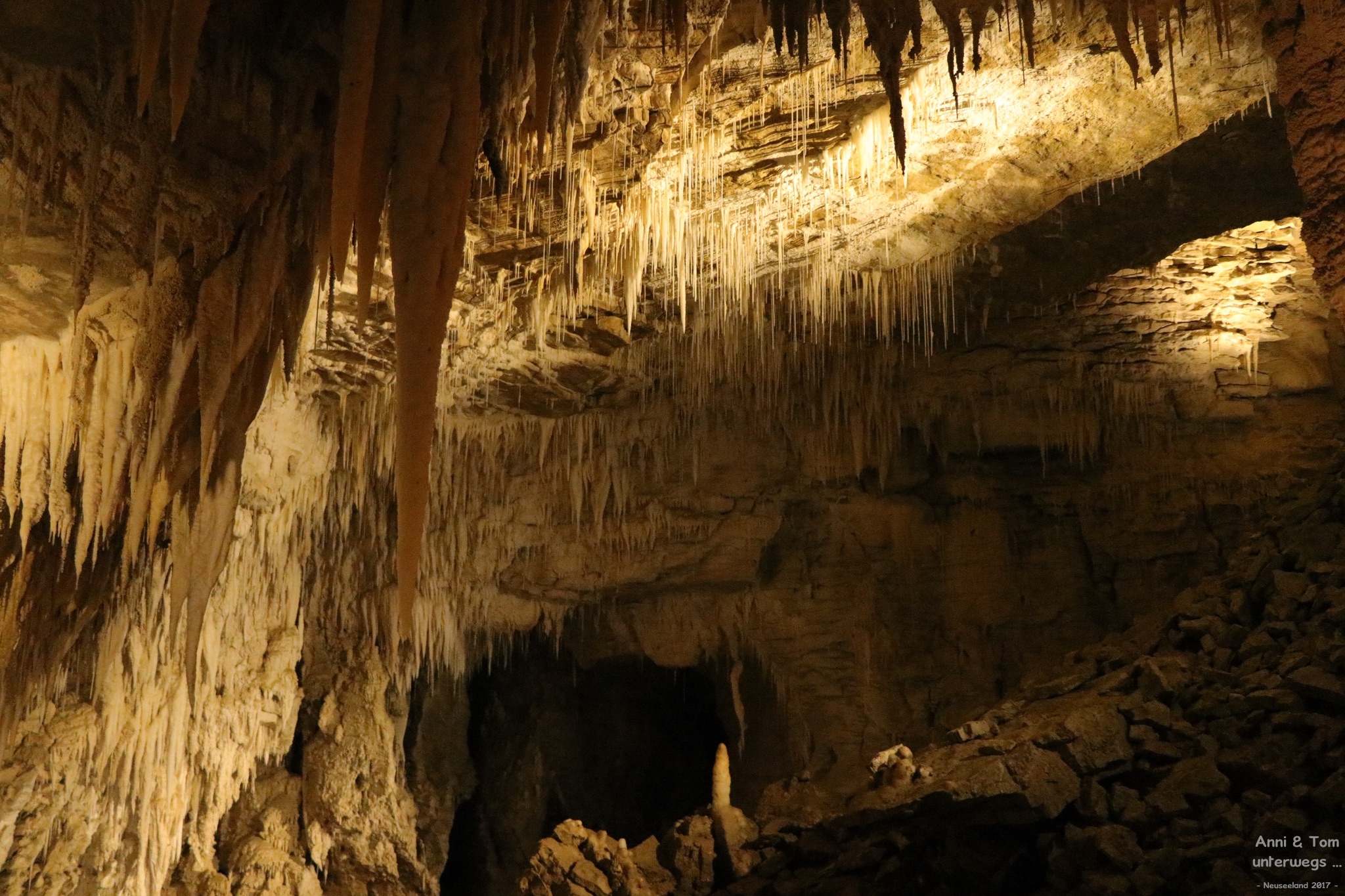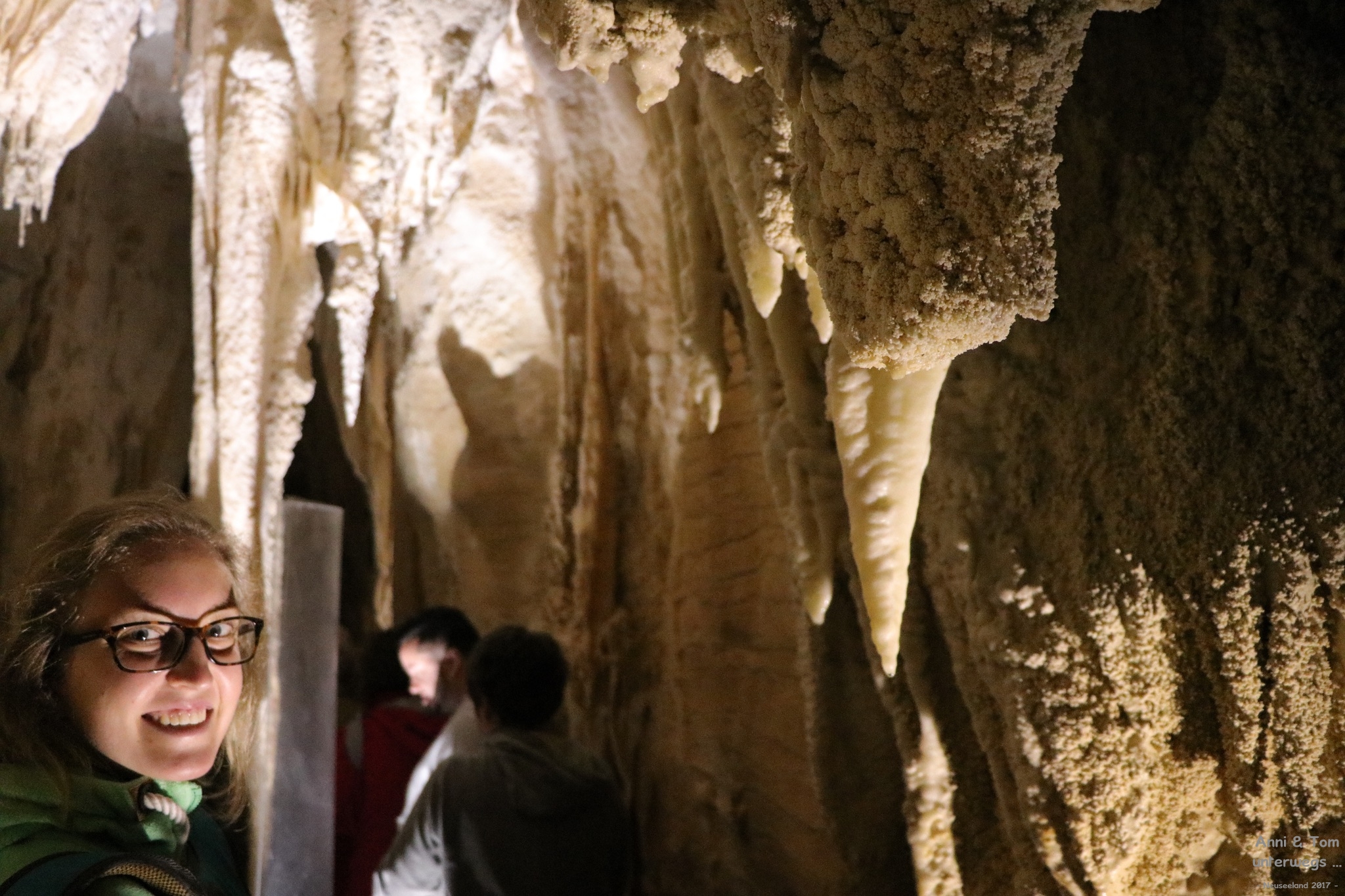Weiter geht es mit der Besichtigung einer zweiten Höhle. Diese ist für die besonderen Formen der Stalaktiten und Stalagmiten bekannt, welche wir als unter anderem als "Vorhänge" und "Korallen" entdecken.