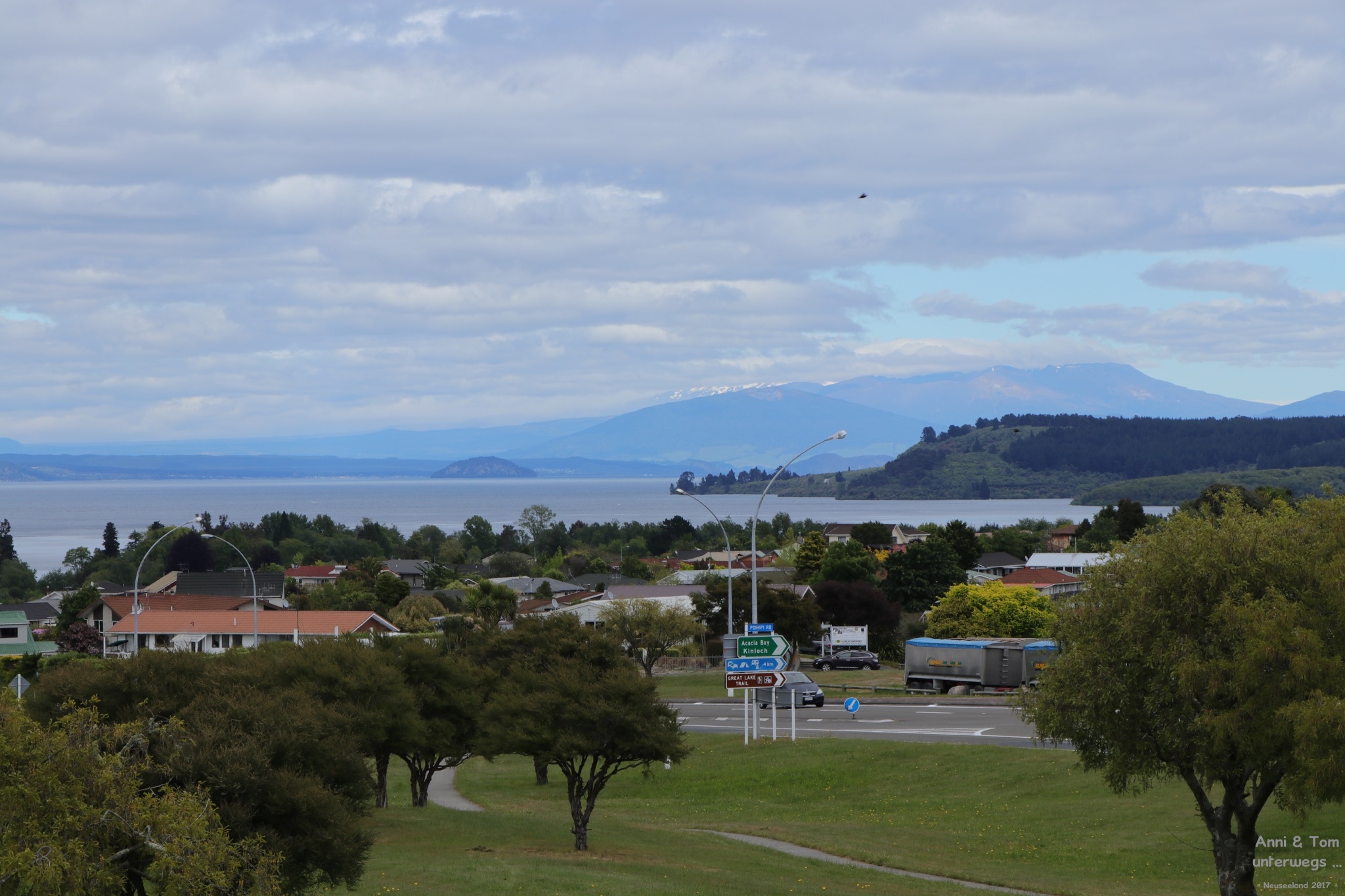Von strahlendem Sonnenschein werden wir geweckt. Nach dem Frühstück machen wir uns auf den Weg nach Taupo. Auf dem Weg dahin machen wir einen Abstecher zu den Huka Falls (starke Stromschwellen und ein kleiner Wasserfall des Waikatoflusses). In Taupo angekommen erblicken wir den riesigen See (Lake Taupo). Nach einem kleinen Spaziergang durch den Hafen entscheiden wir uns für eine Bootsfahrt zu den Maori Felsschnitzungen.