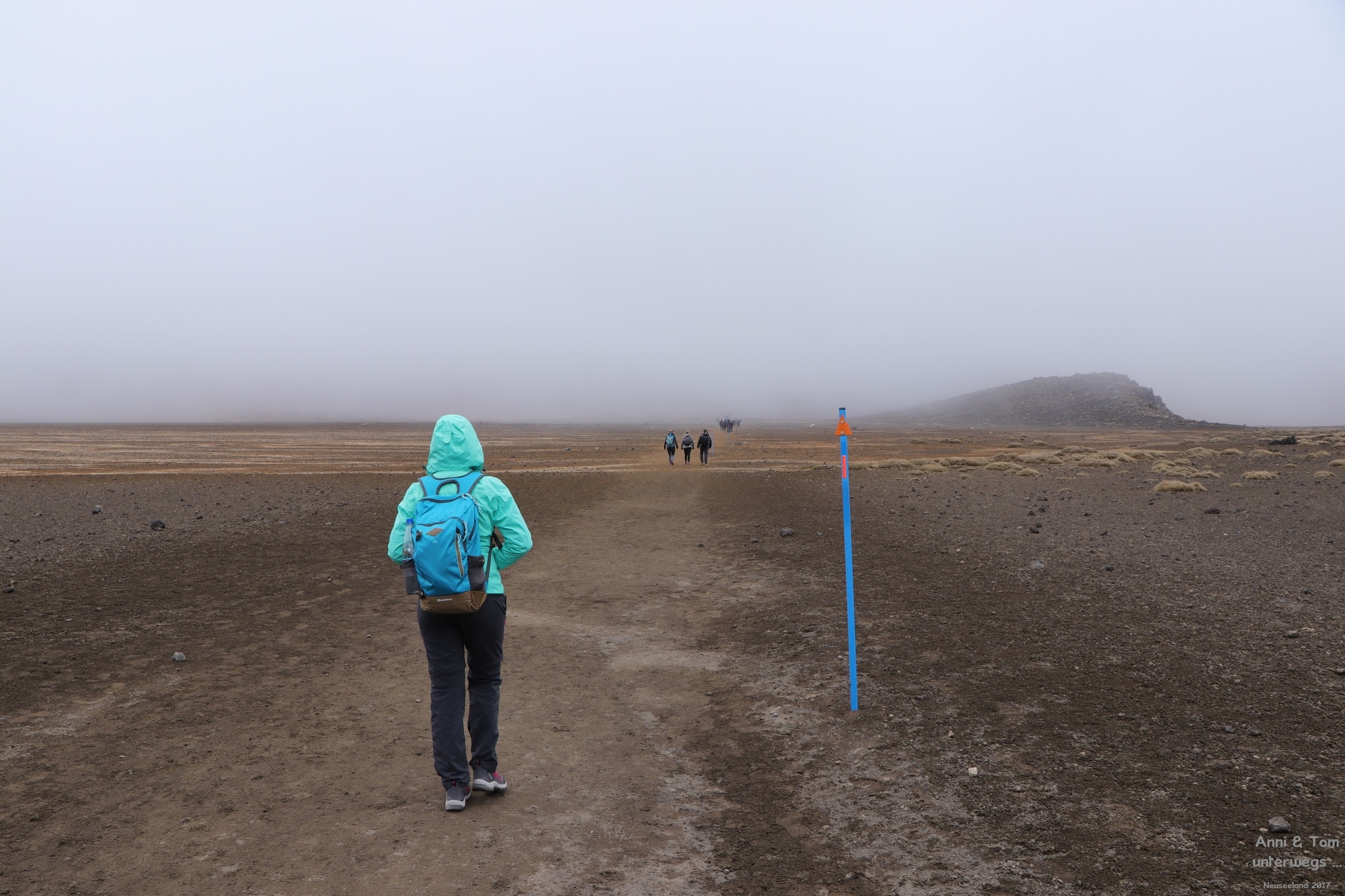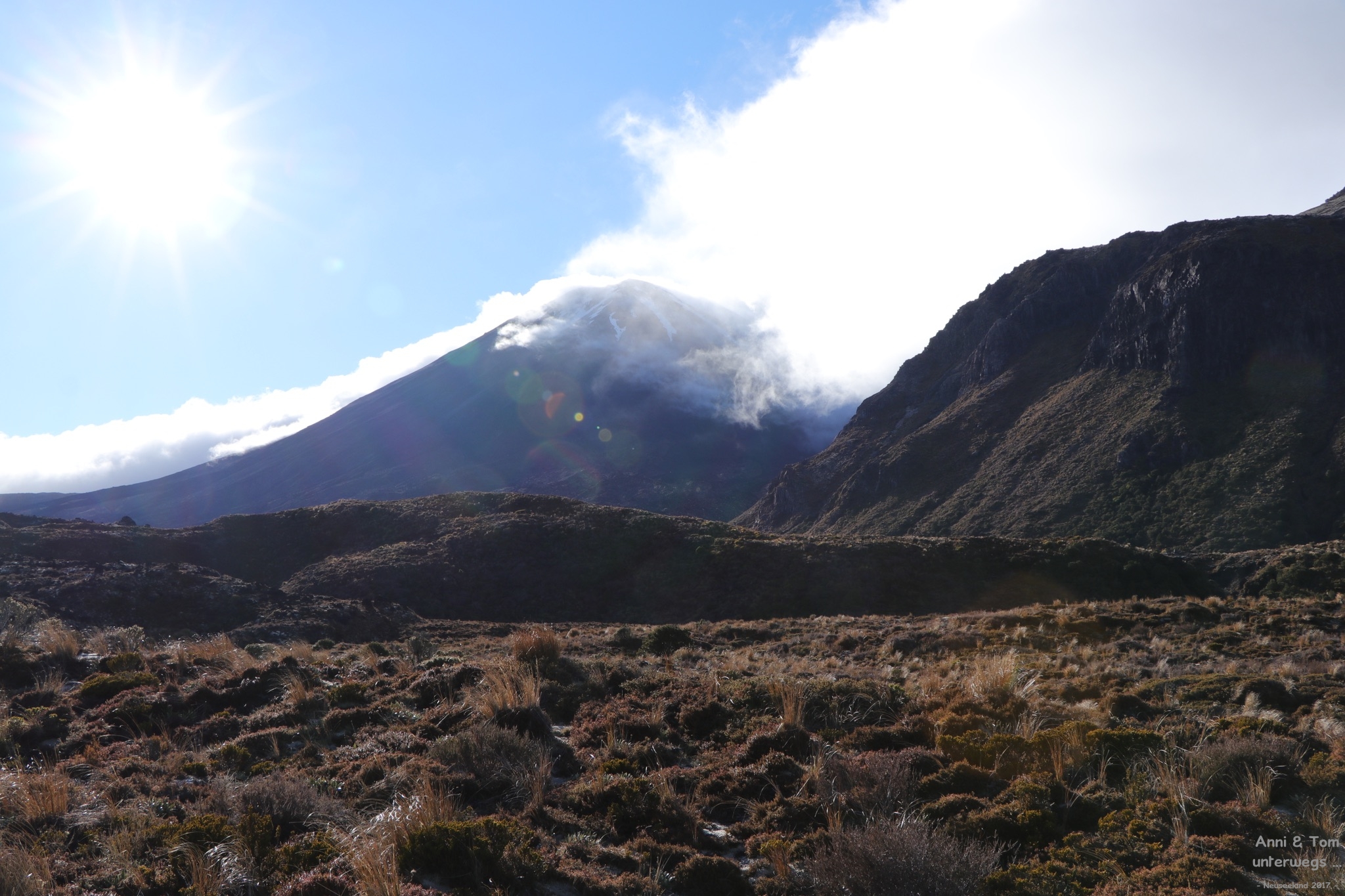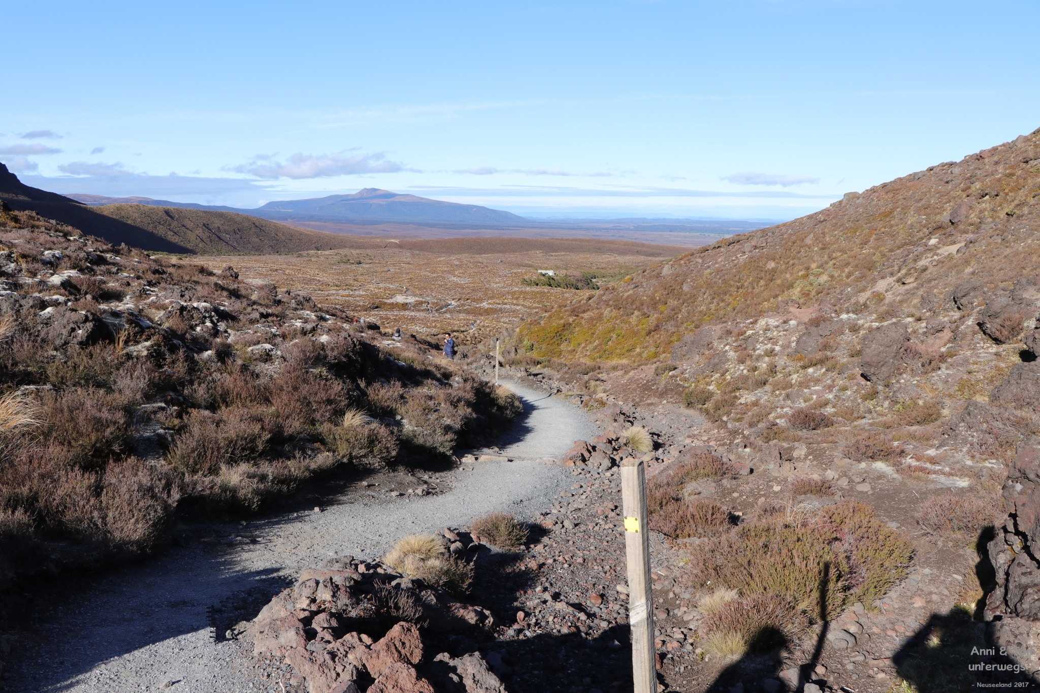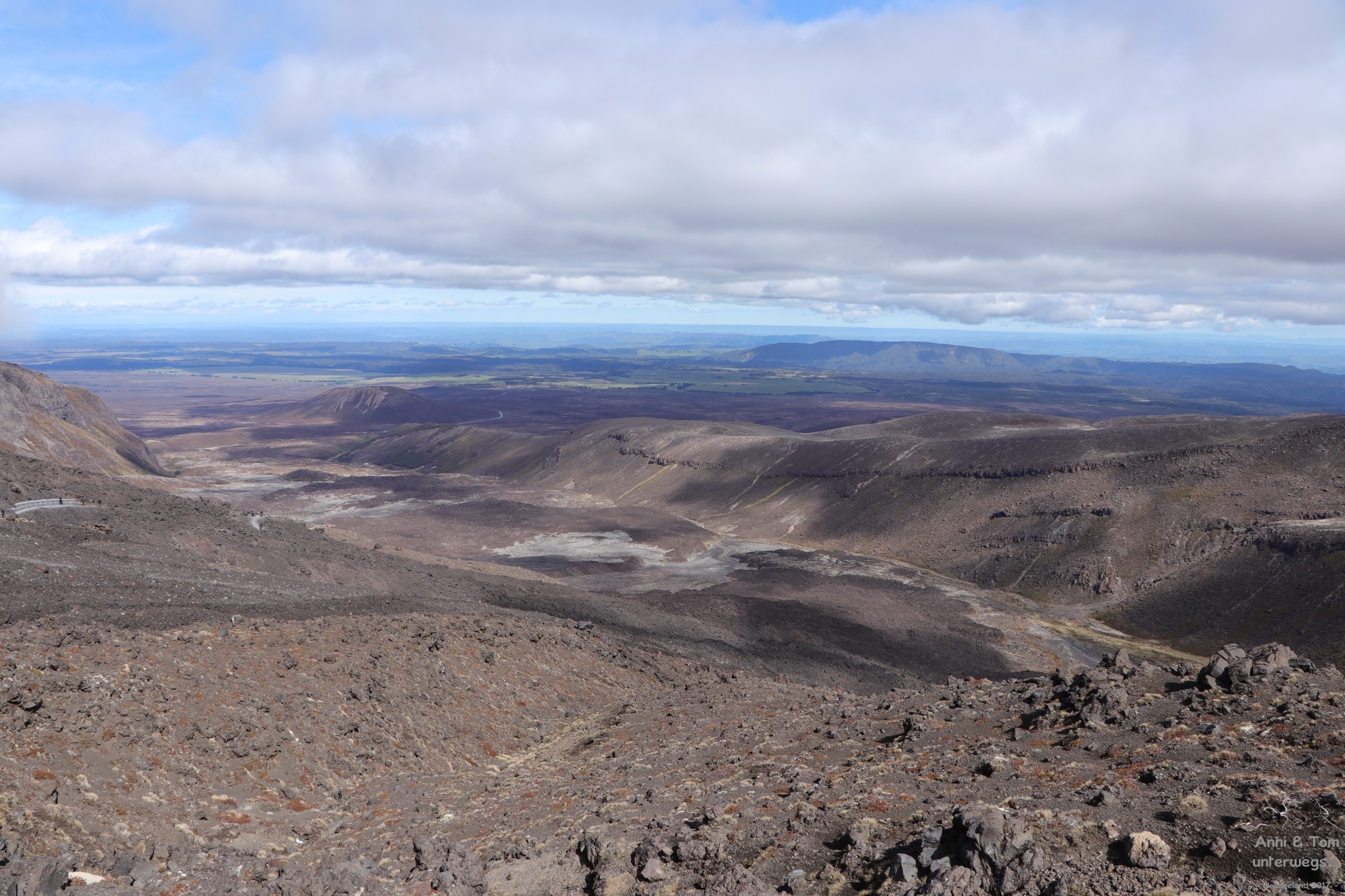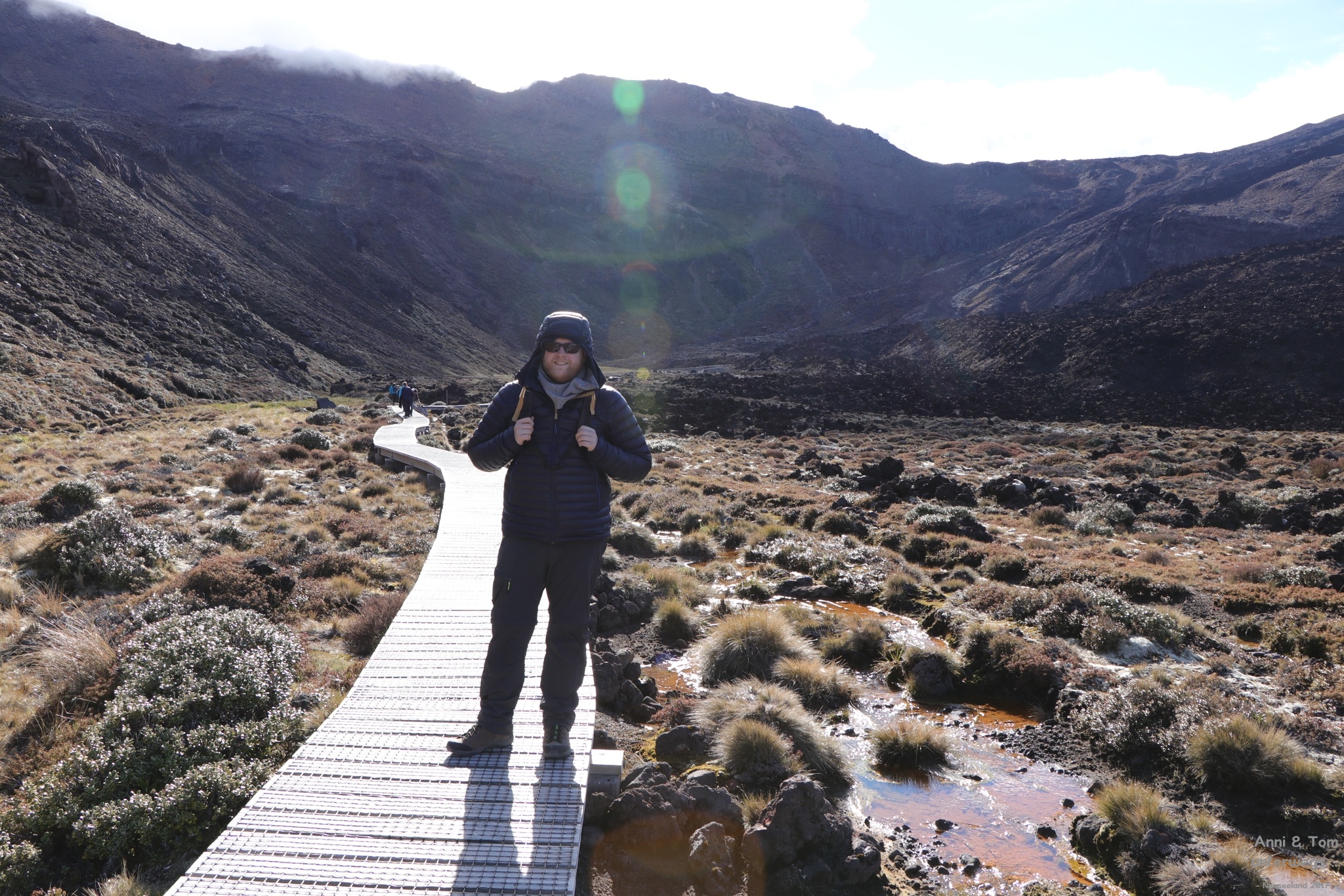Früh klingelt heute morgen der Wecker, da wir bereits um 07:00 Uhr von einem Shuttlebus zum Startpunkt unserer Tageswanderung, dem Tongariro Alpine Crossing, gefahren werden. Die Strecke umfasst etwas mehr als 20 km und es müssen ca. 1000 Höhenmeter überwunden werden.