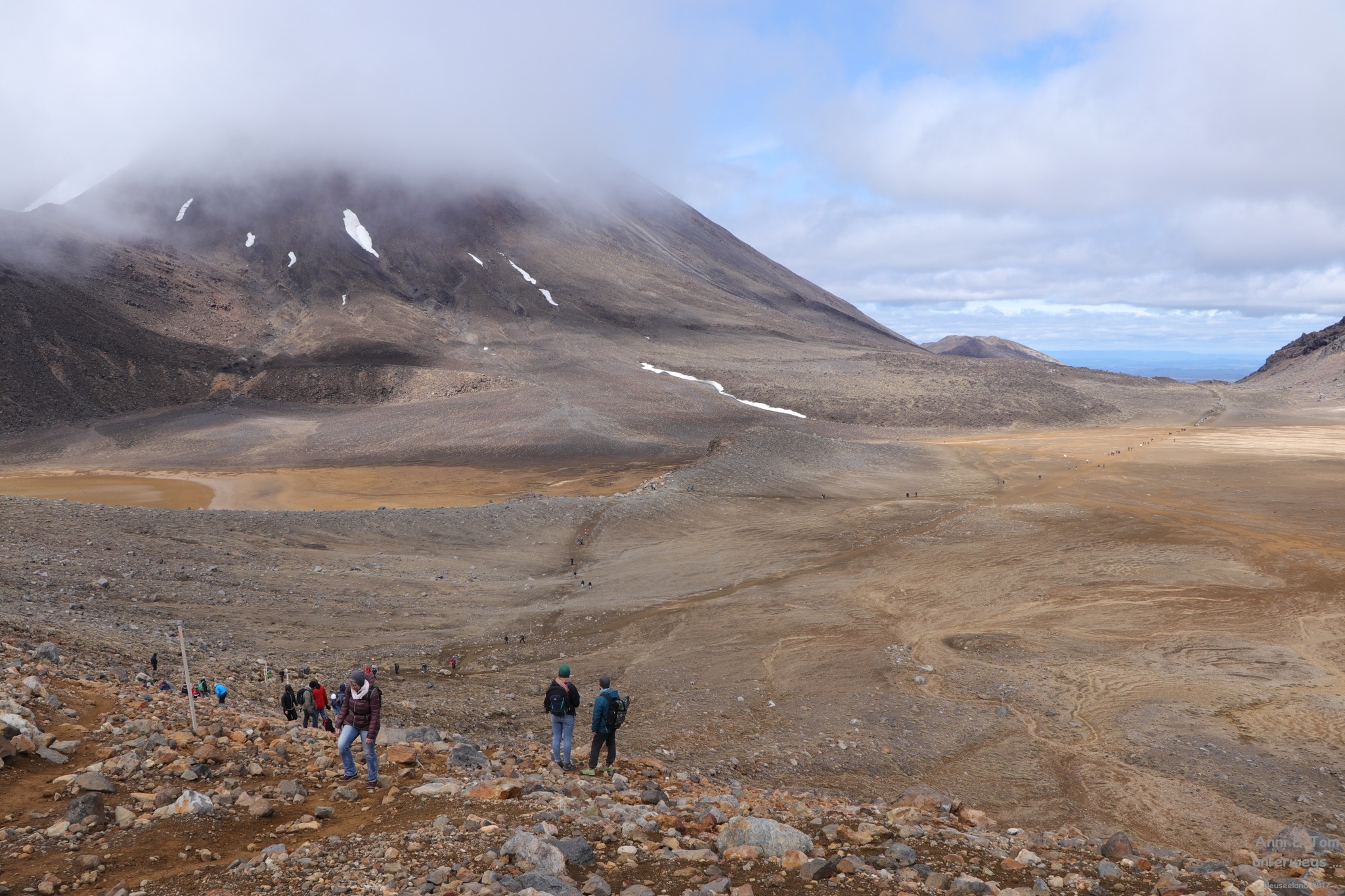 Nach den ersten 5 km ist der höchste Punkt der Wanderung bereits erreicht. Oben angekommen hat man eine wunderbare Sicht auf die Vulkanlandschaft und erblickt 3 Kraterseen, welche teilweise türkisblau gefärbt sind. Der Abstieg zieht sich über den größten Teil der Strecke hin; vorbei an schweflig riechenden und dampfenden Feldern spürt man immer noch die Aktivität der Vulkangegend.