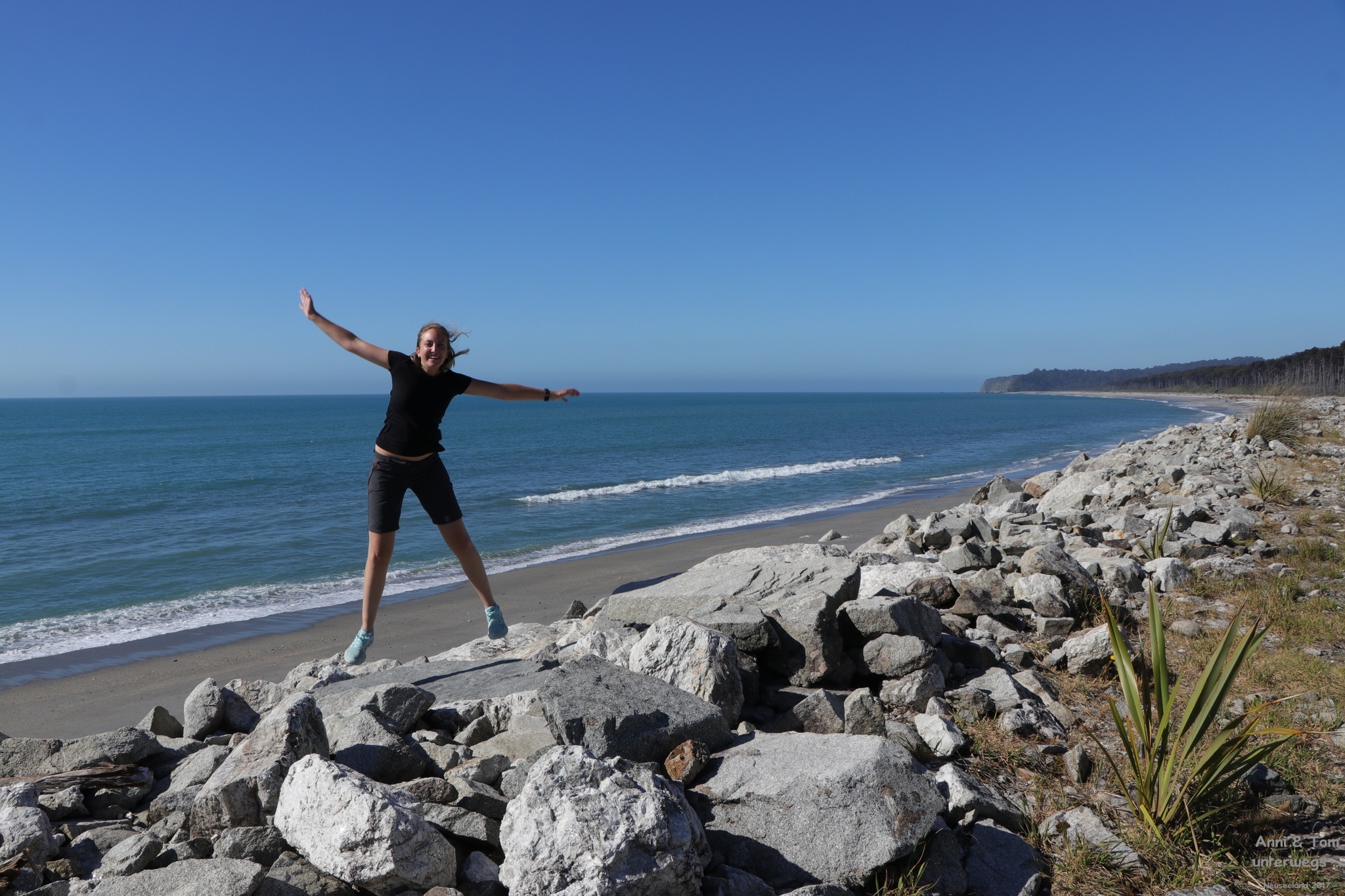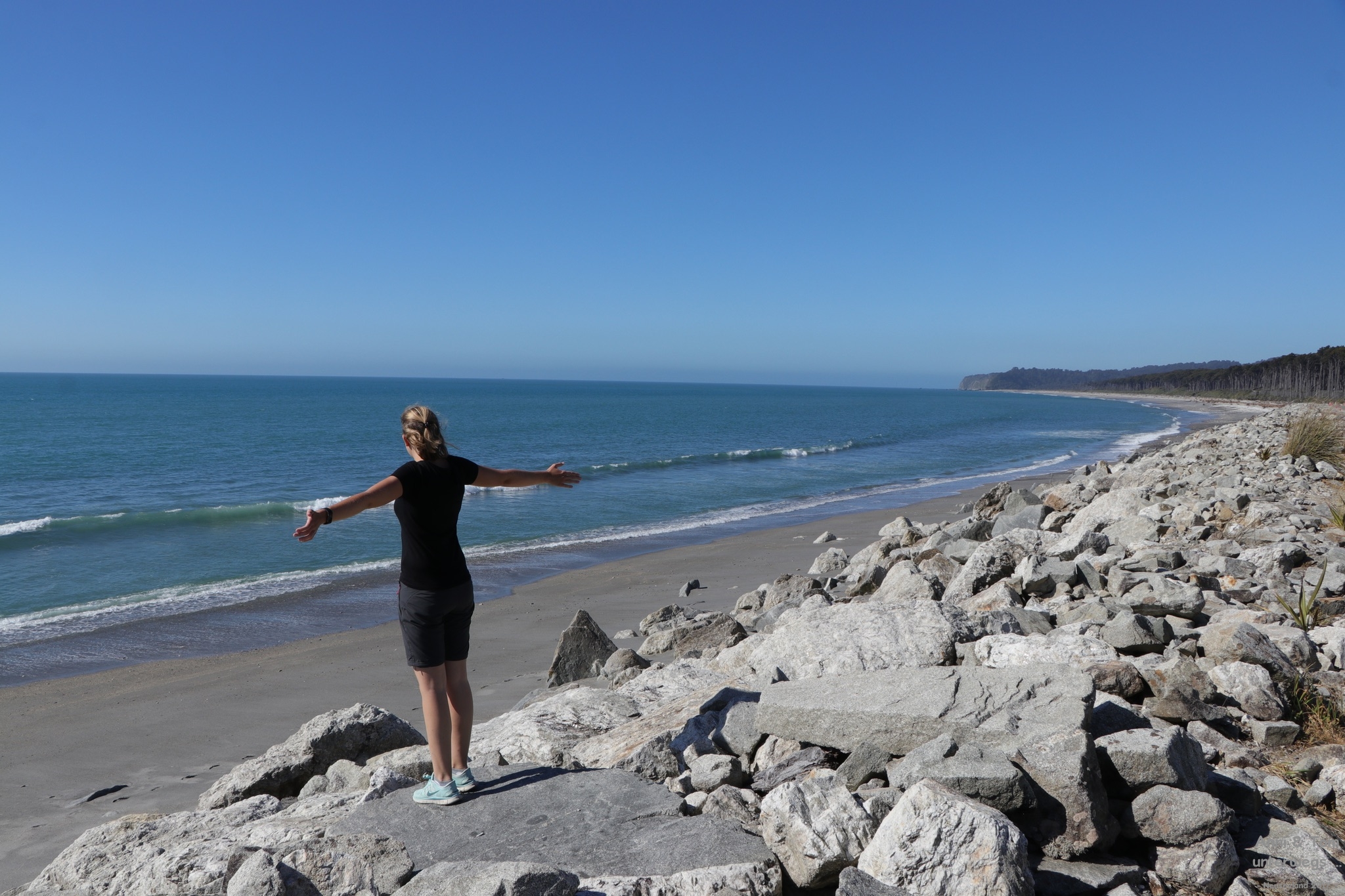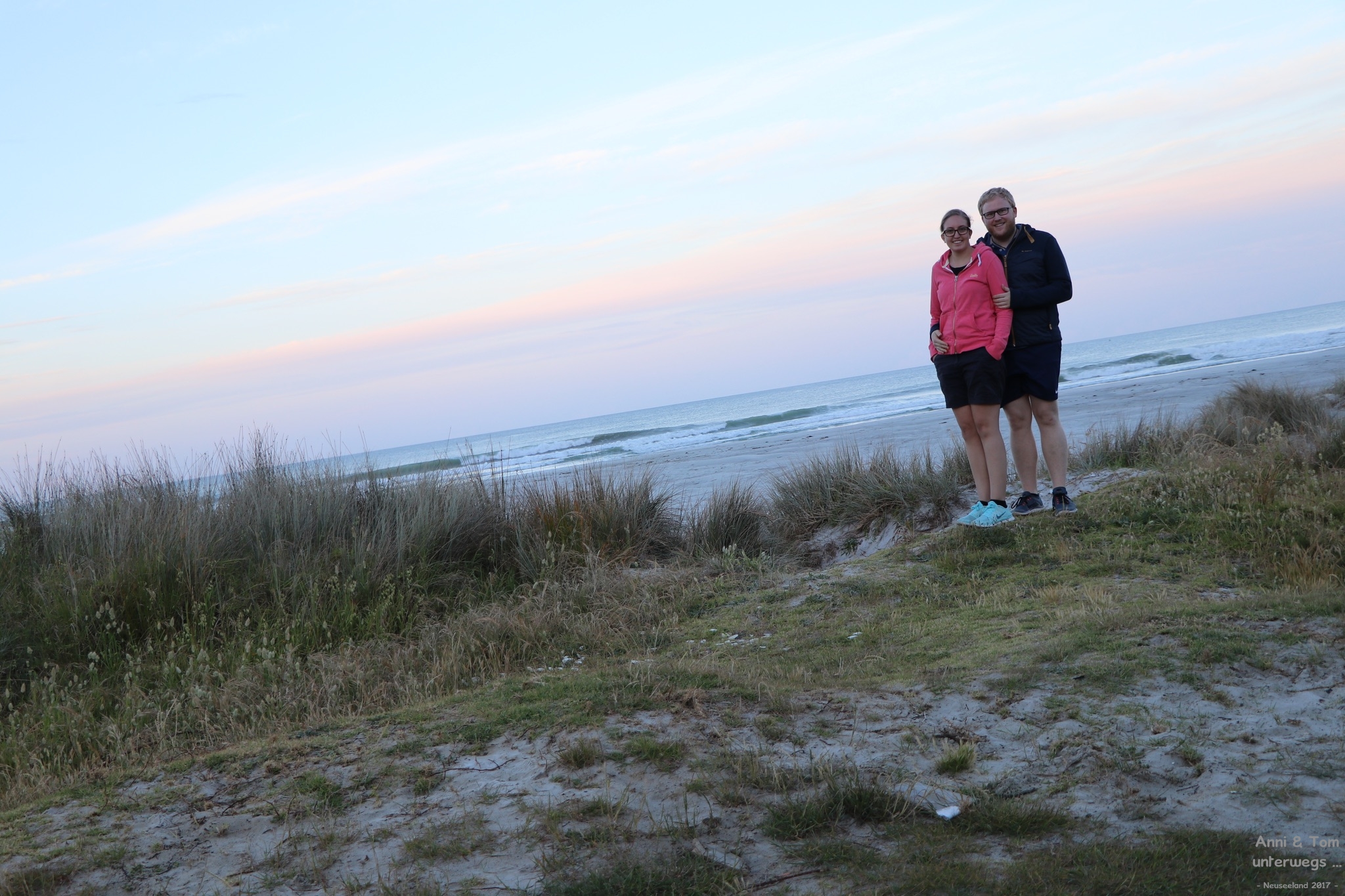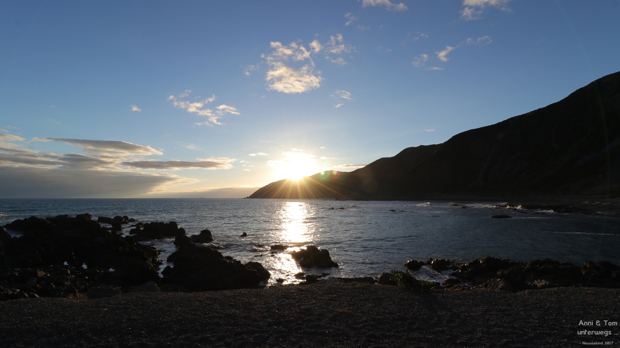 In Wellington angekommen ergattern wir den letzten freien Stellplatz auf einem Campingplatz direkt am Pazifik :-)