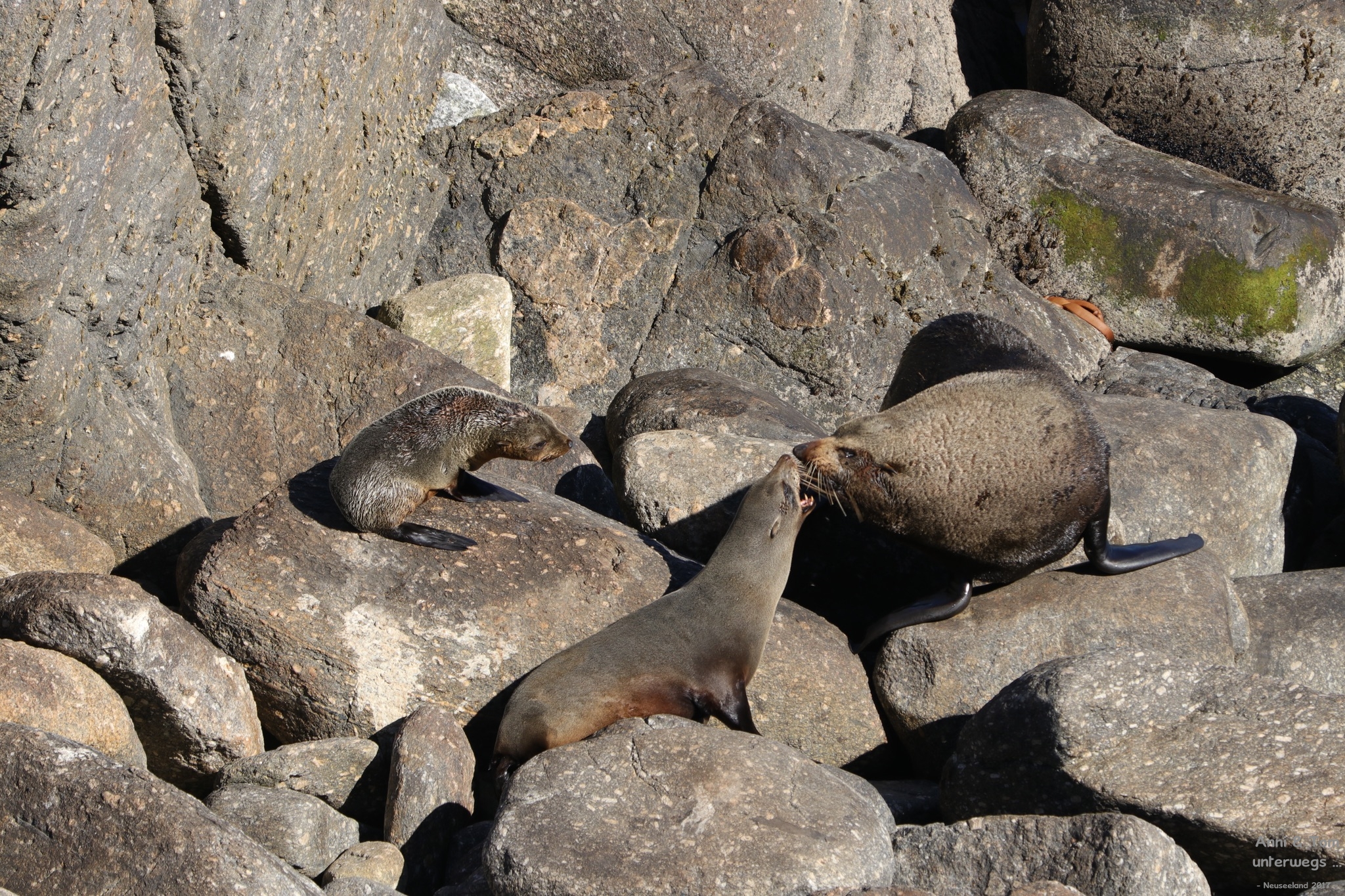 Auf dem Weg dahin machen wir noch einen Abstecher zu einer Seehundkolonie. Dort angekommen müssen wir diese erst einmal suchen. Die Seehunde haben sich so gut zwischen den Felsen versteckt, dass man sie auf den ersten Blick nicht sieht. Nach ein paar Minuten entdecken wir immer mehr :-)