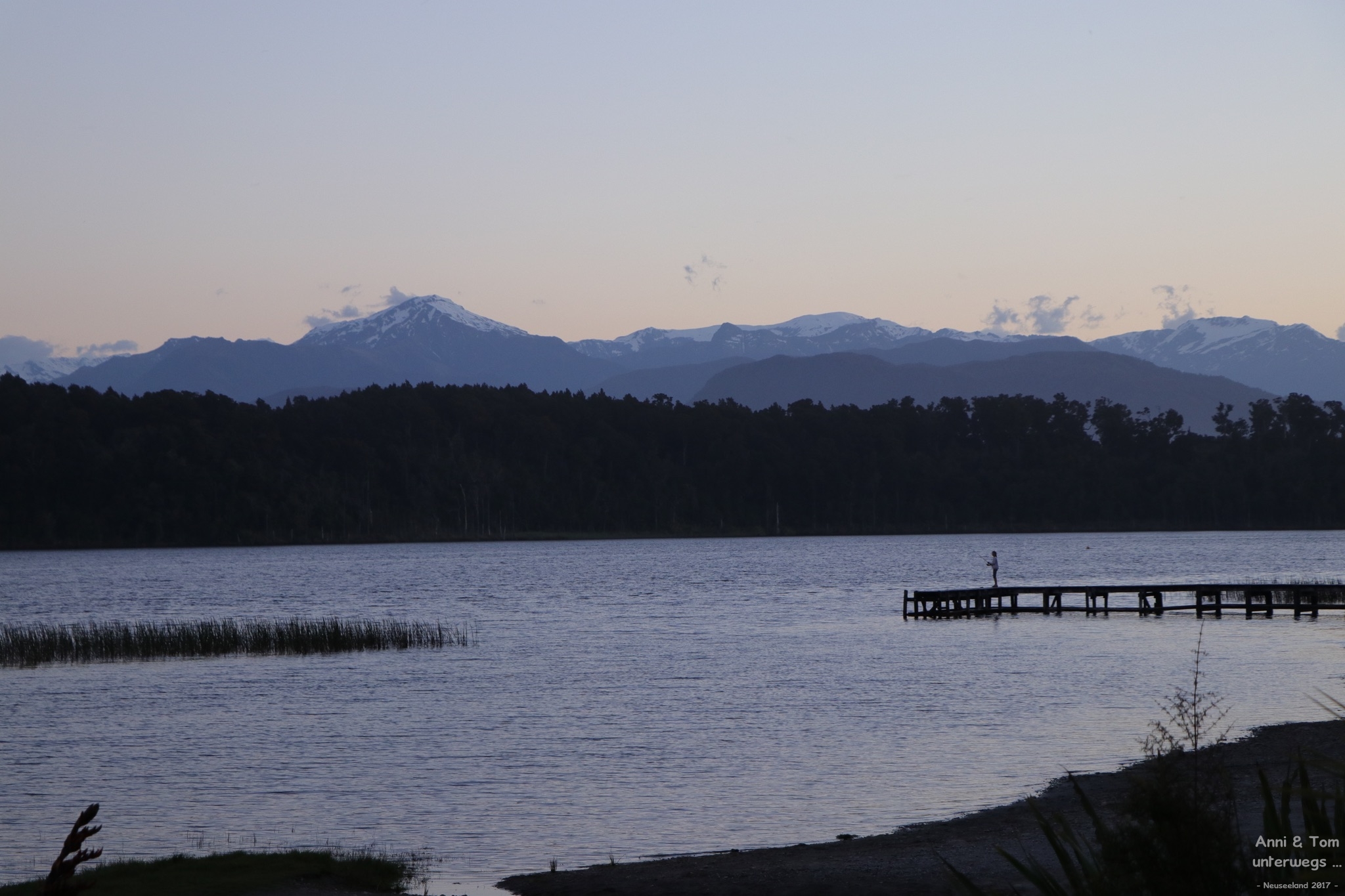 Unser heutiger Campingplatz liegt schön am Rande eines Sees und ist zum Glück frei von Sandfliegen, sodass wir das super Wetter bis zum Schluss genießen können :-)