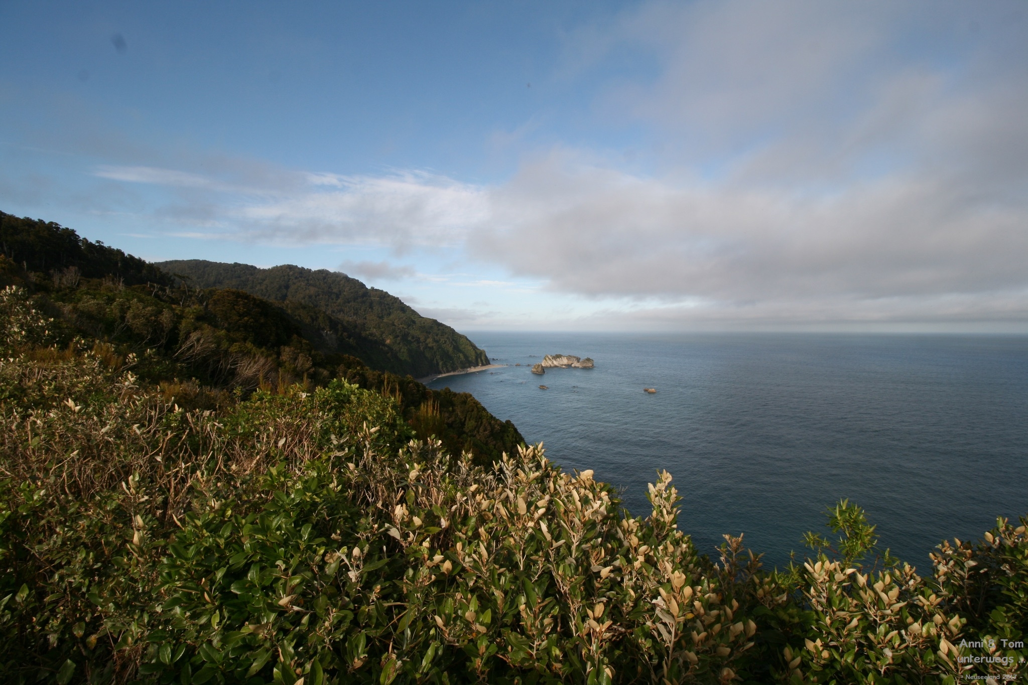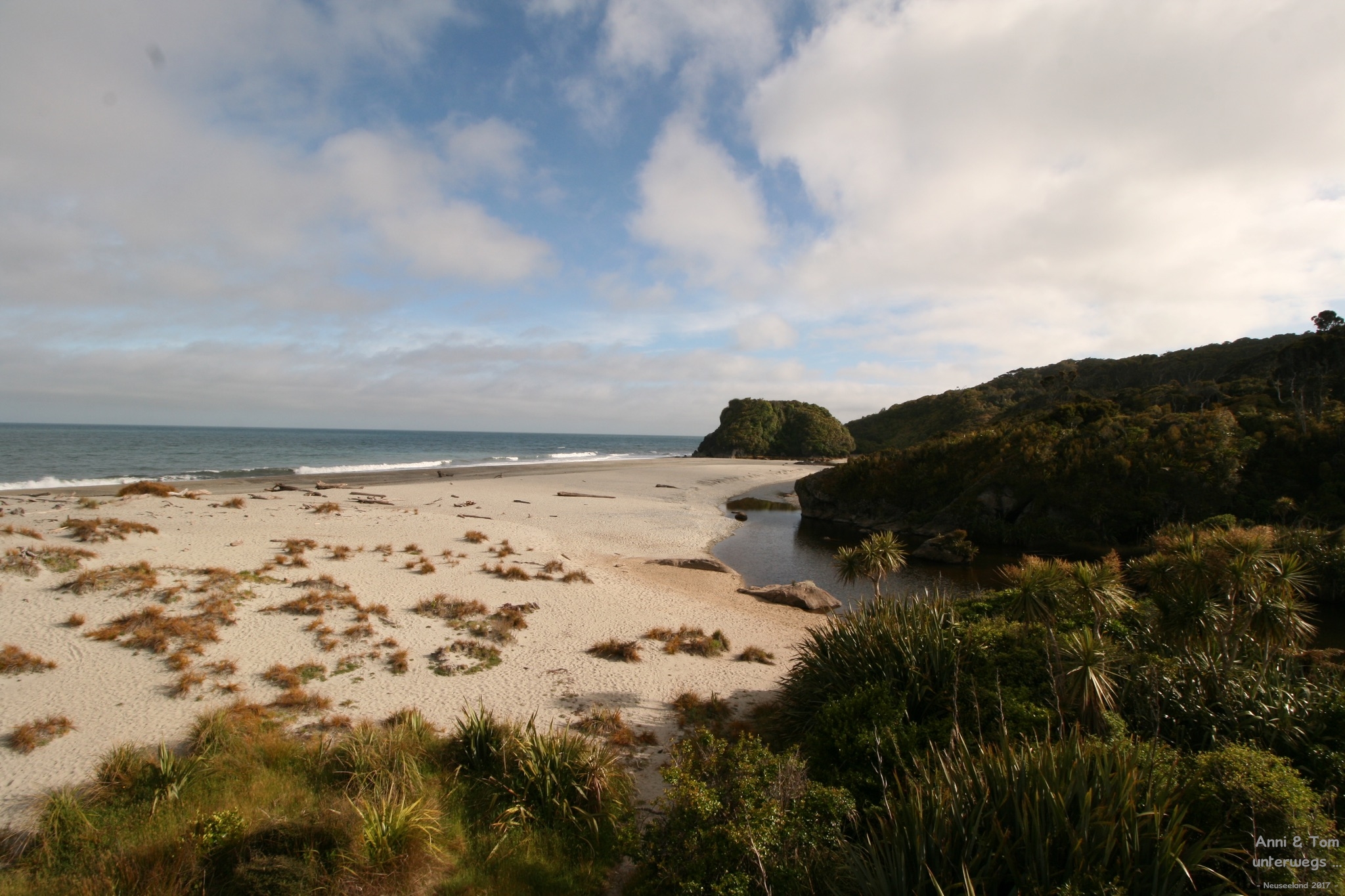 Bevor wir uns weiter auf den Weg Richtung Pancake Rocks machen, spazieren wir noch ein Stück an der Küste entlang Richtung Leuchtturm.