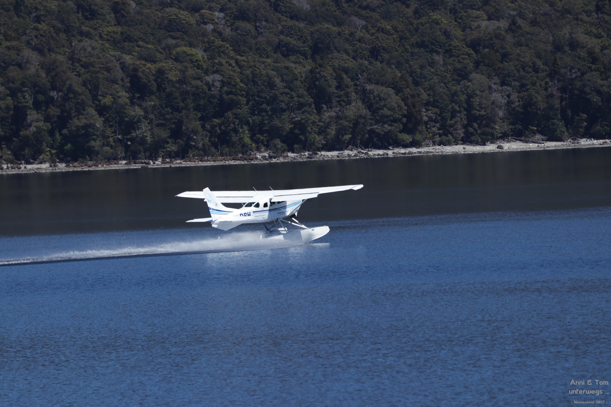 Einen weiteren Zwischenstopp legen wir in der kleinen Stadt Te Anau ein. Dort genießen wir die Zeit am Lake Te Anau in der Sonne und sehen dabei Wasserflugzeugen beim Starten und Landen zu.