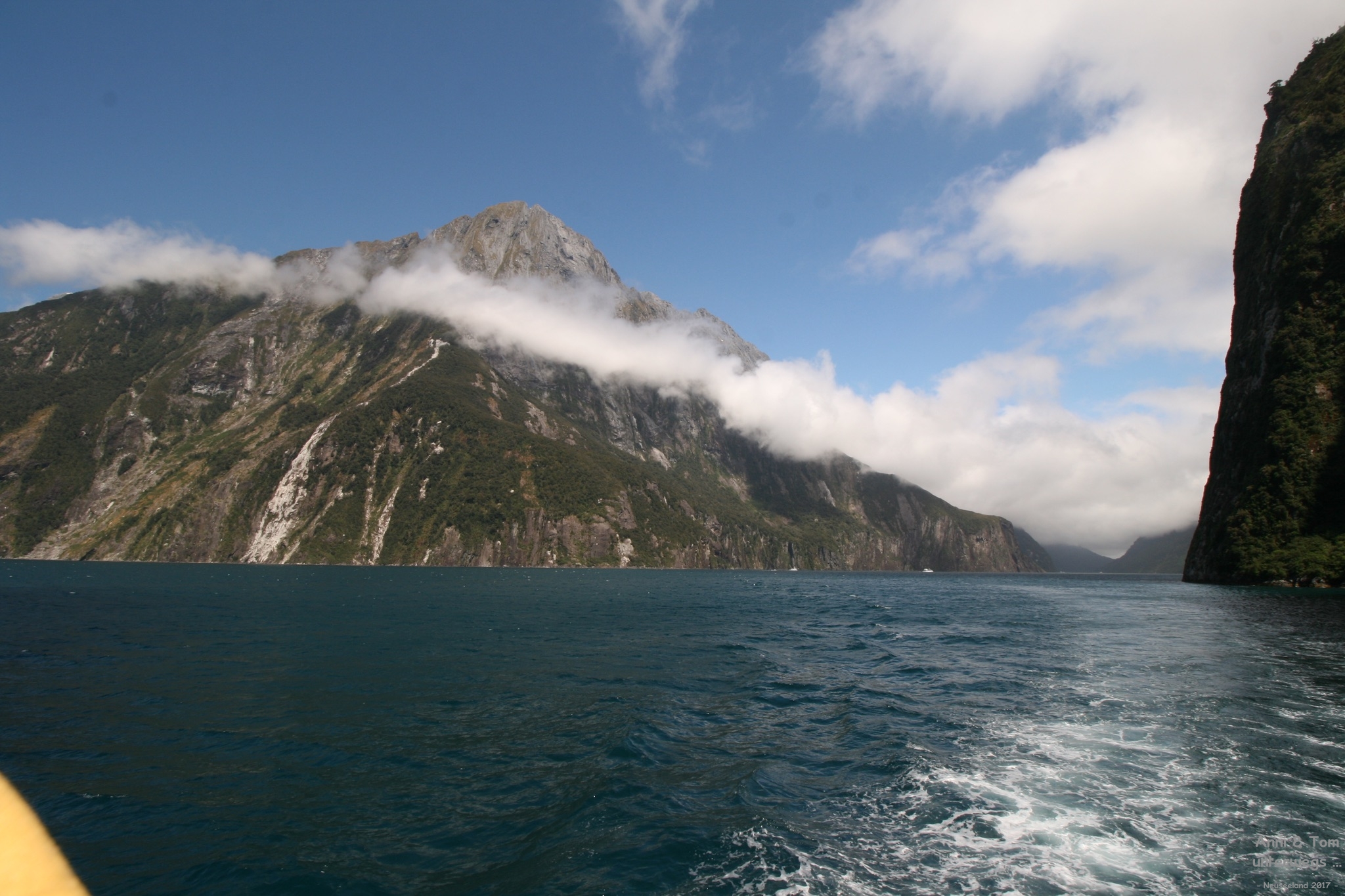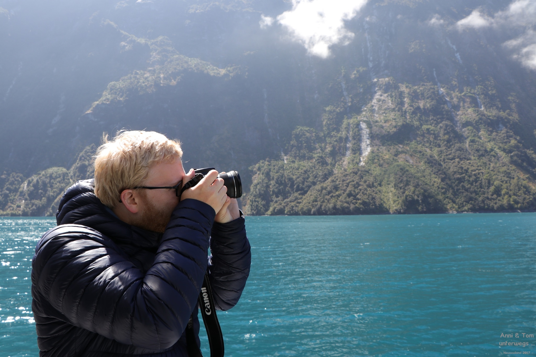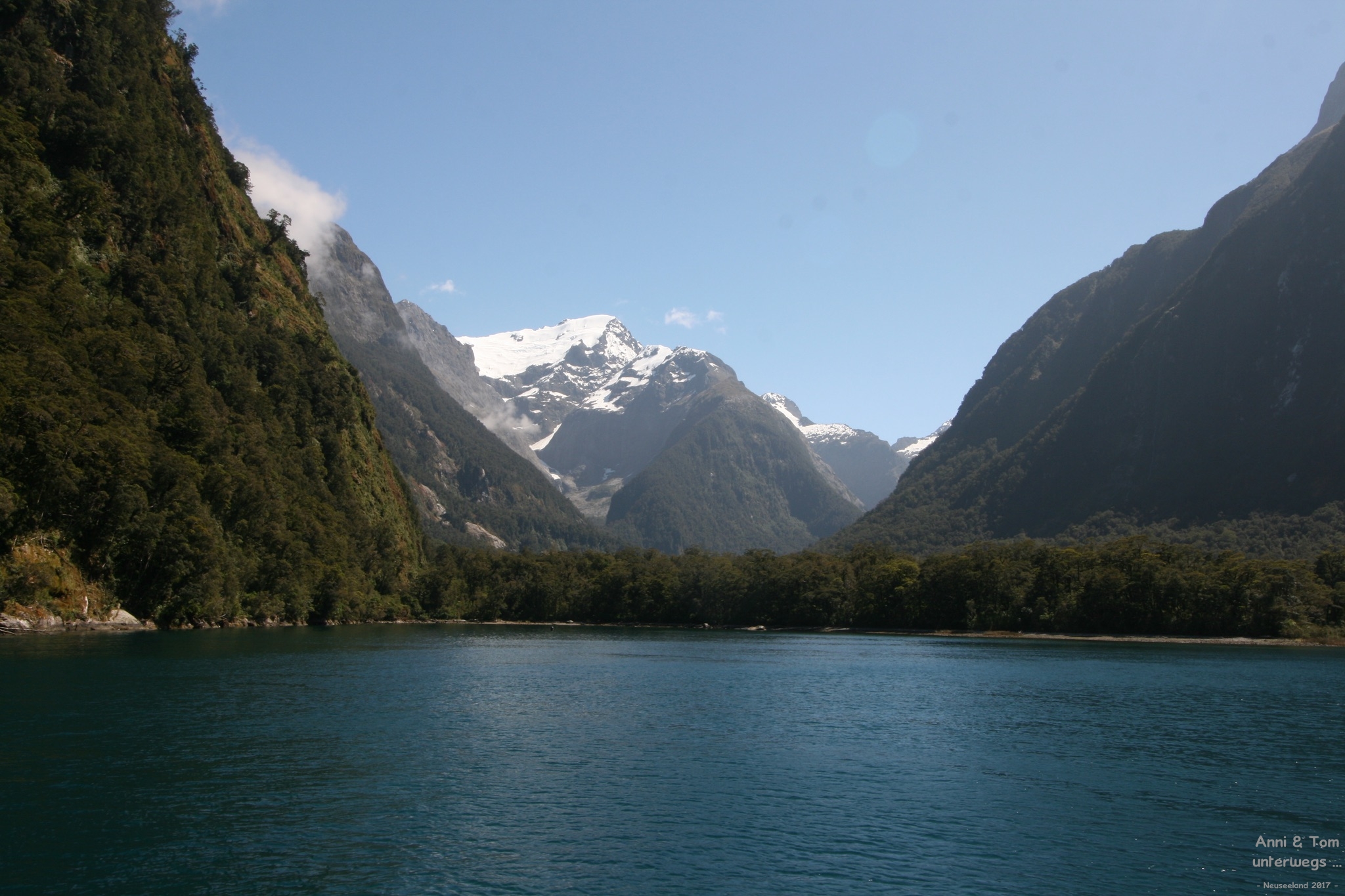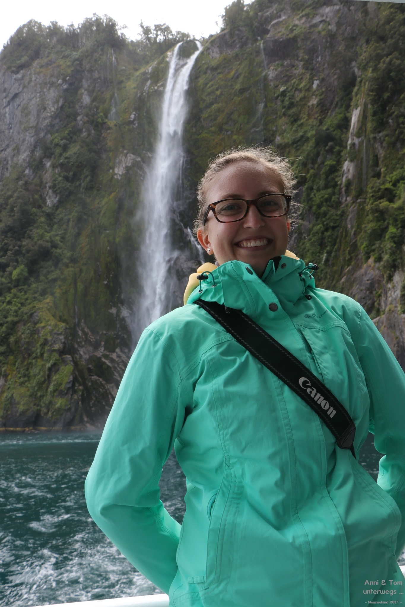 Mit dem Boot erkunden wir einige Stunden den Fjord. Während dieser Zeit sichten wir ein drei Fjordland Pinguine, welche nur hier leben und vom aussterben bedroht sind, und Seehunde. Aufgrund des geringen Niederschlags, in der letzten Zeit, sehen wir "nur" permanente Wasserfälle, die zahlreichen temporären bleiben uns vorenthalten.