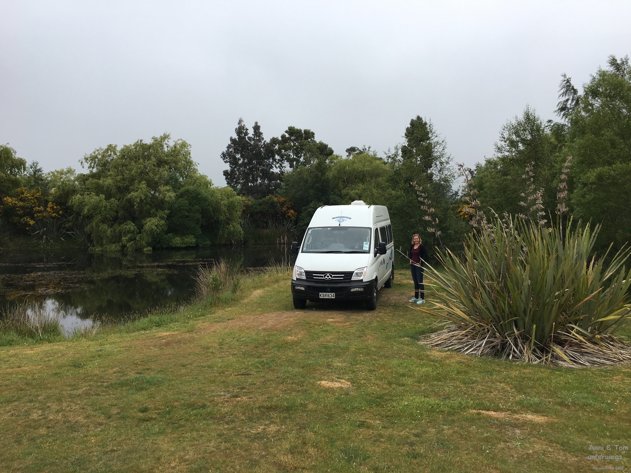 Am Abend finden wir einen gemütlichen Campingplatz auf halber Strecke zwischen Dunedin und Christchurch.
