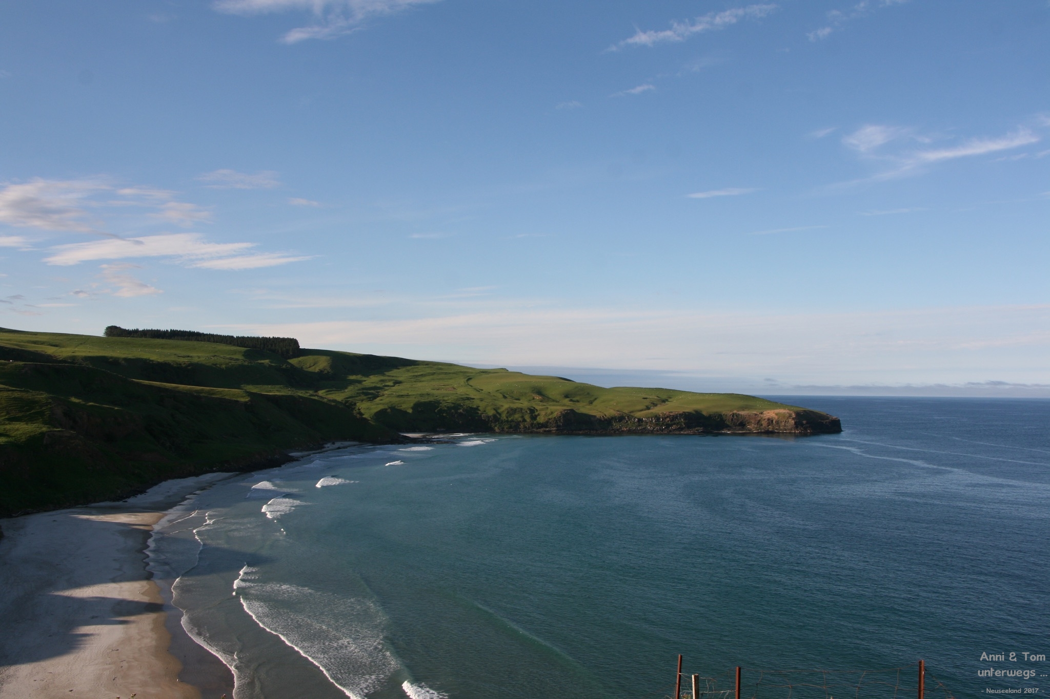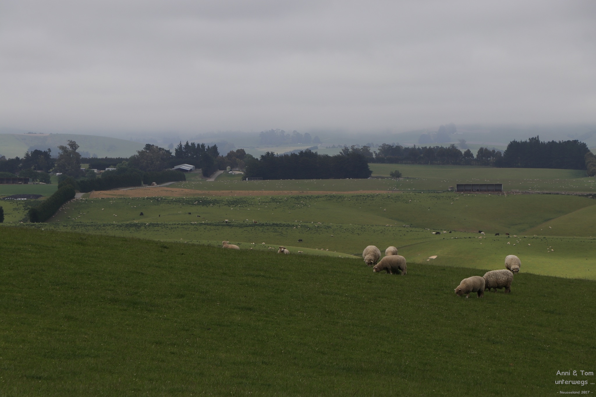 Trotz sehr nebeligem Wetter starten heute morgen Richtung Dunedin. Leider klart der Himmel auch nicht in Küstennähe stärker auf, sodass wir den ganzen Tag von Nebel und Wolken umgeben sind.