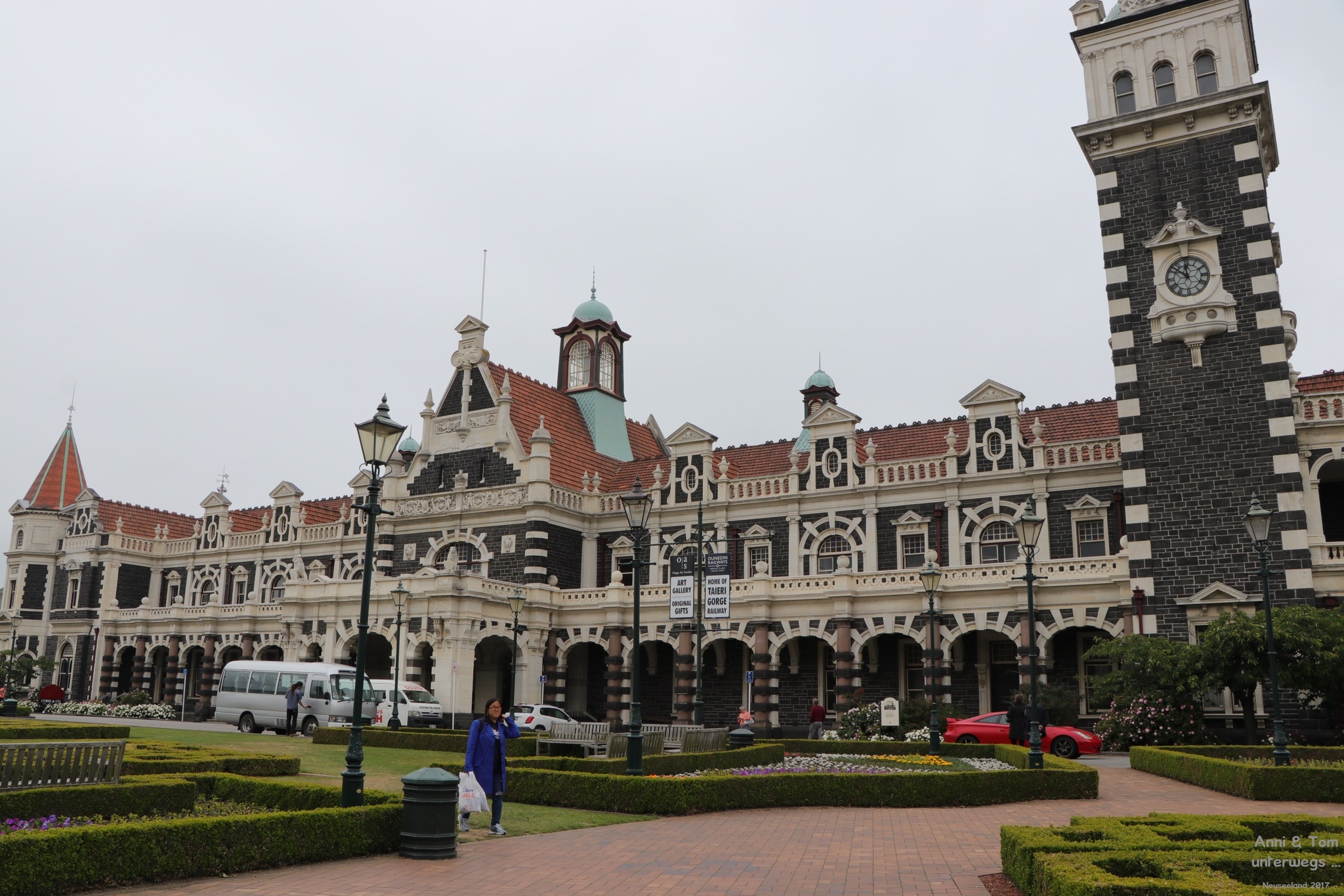 In Dunedin angekommen, erkunden wir die Stadt und lassen uns unser Mittagessen im Zentrum am 'The Octagon' schmecken. Obwohl viele Wolken am Himmel sind, können wir das Essen draußen im Warmen genießen.
