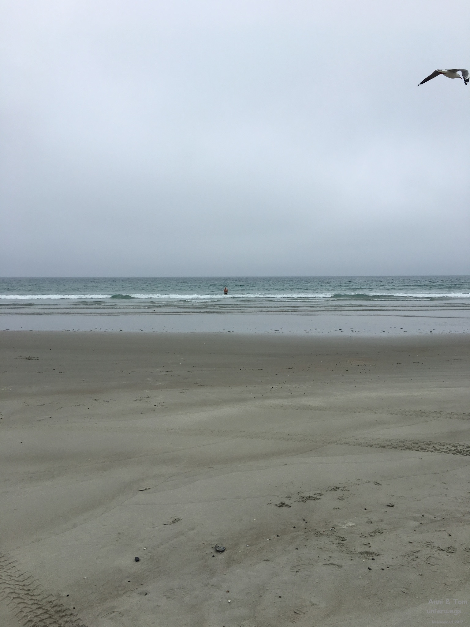 Am Nachmittag geht es dann raus aus der Stadt zum Long Beach, um eine Runde im kühlen Pazifik zu baden (nur Tom - Anni friert... :-) )