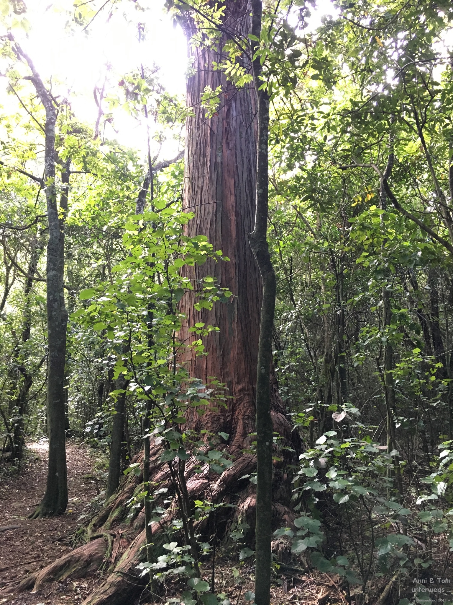 Nach einem leckeren Frühstück machen wir uns auf den Weg zum Tane Mahuta, den größten Kauribaum der Welt. Bei einem Spaziergang durch den Wald entdecken wir noch viele weitere Kauris :-)