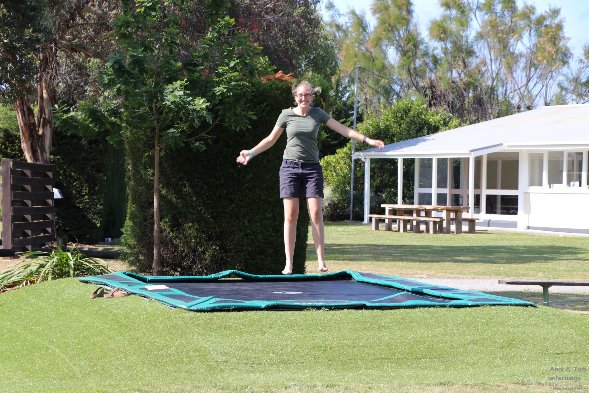 Am Abend wird dann noch das große Trampolin auf dem Campingplatz getestet :-)