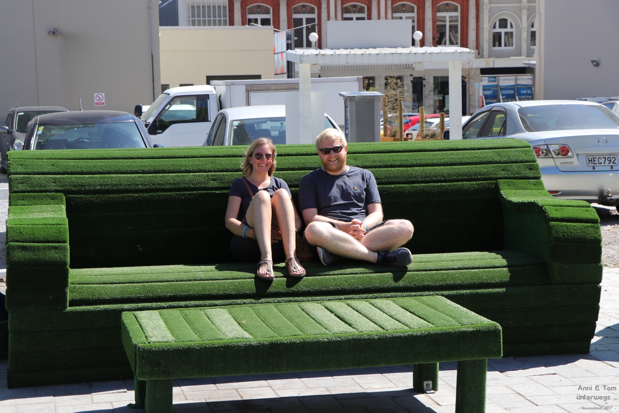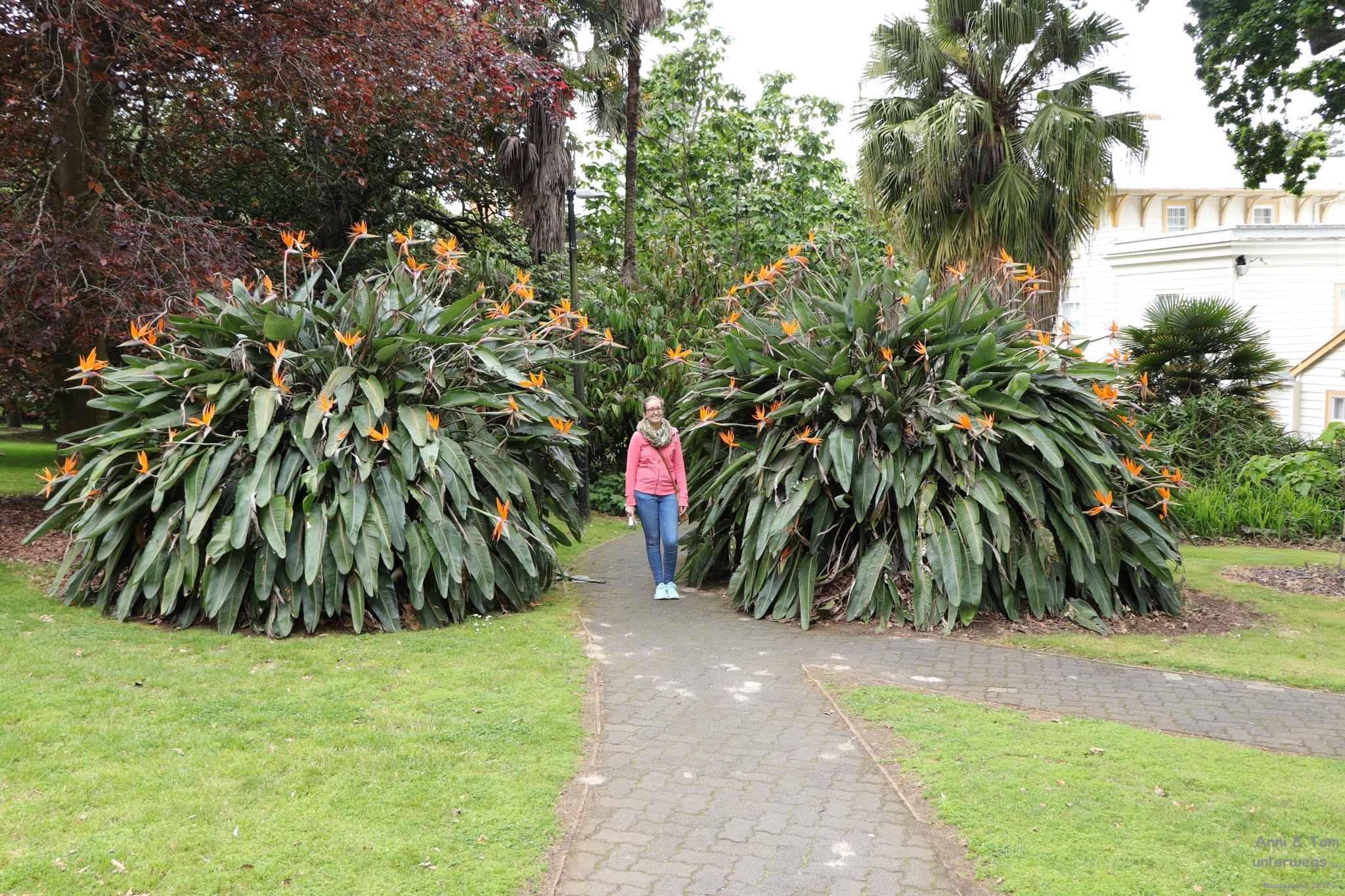 Heute geht es Richtung Innenstadt. Dort angekommen sind wir sehr überrascht, wie stark Christchurch noch von dem Erdbeben 2011 gezeichnet ist. Viele historische Gebäude werden noch von Baupfeilern gestützt und/oder renoviert. Durch wenige Hochhäuser und den zentralgelegenen botanischen Garten wirkt die Stadt eher gemütlich und nicht wie eine Großstadt.