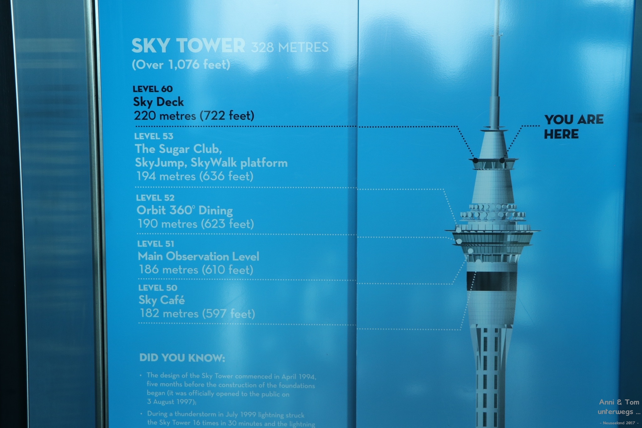 Den Vormittag verbringen wir mit einem Spaziergang, der uns an den wichtigsten Sehenswürdigkeiten Aucklands vorbeiführt. Danach geht es hoch auf den Skytower. Den Abend verbringen wir mit einem Schaufensterbummel in der Queenstreet, wo wir ein paar neue Wanderschuhe für Tom finden :-)