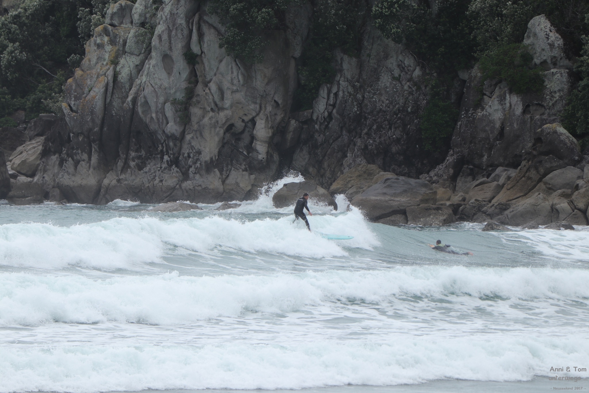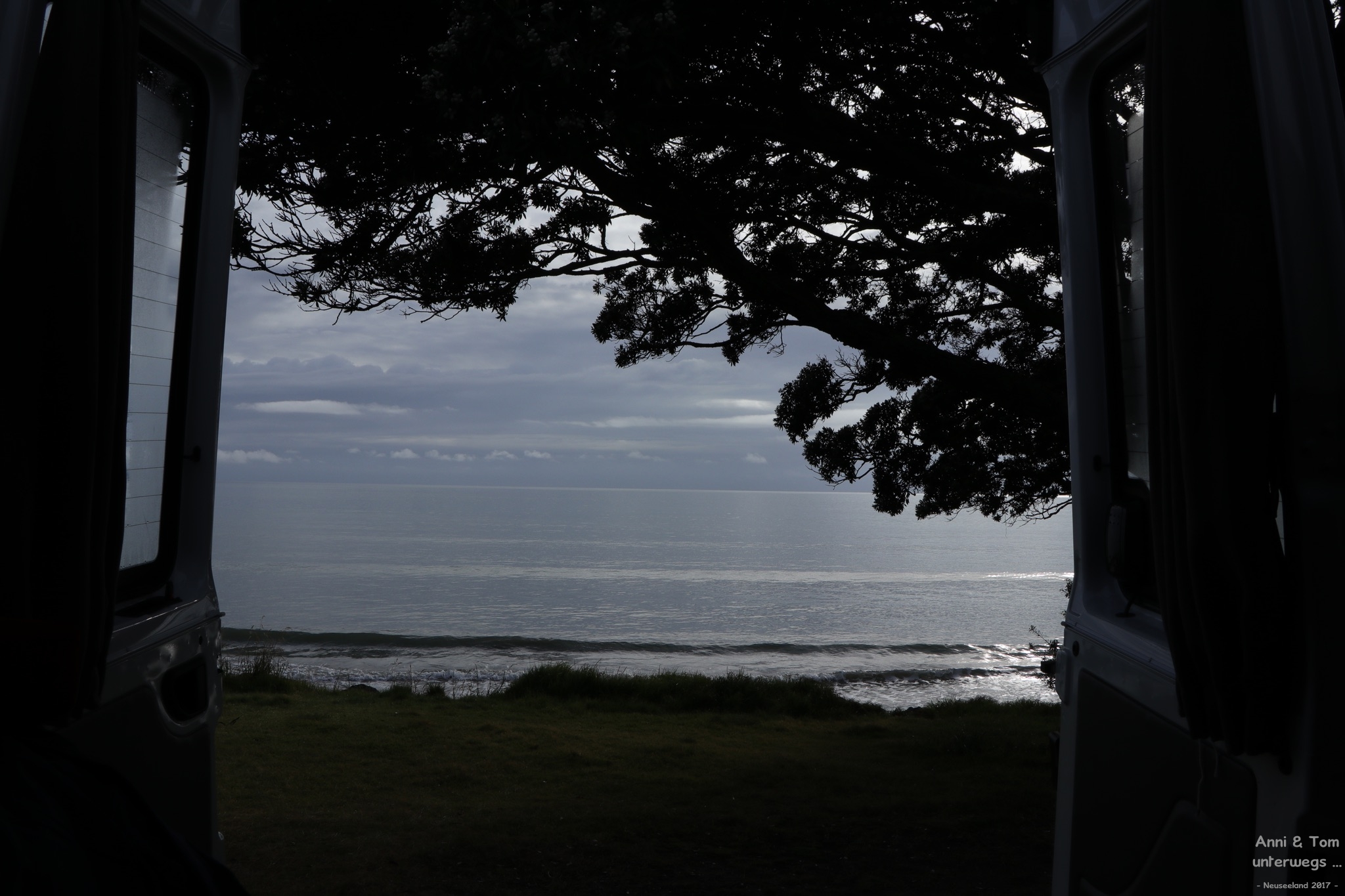 Am späten Nachmittag machen wir uns dann auf den Weg Auckland zu verlassen. Für die erste Nacht im Camper finden wir einen tollen Stellplatz direkt am Pazifik. Dort lassen wir den ersten Abend im Camper gemütlich ausklingen.