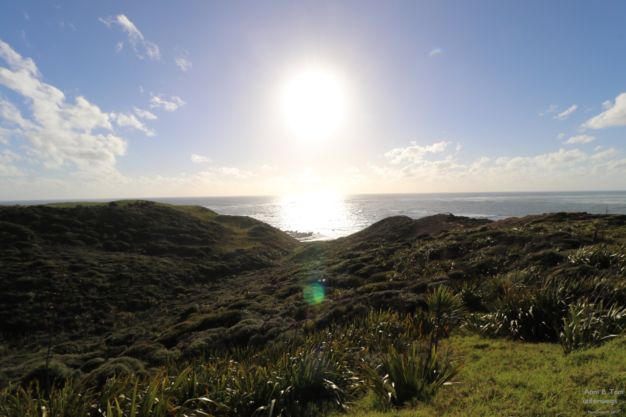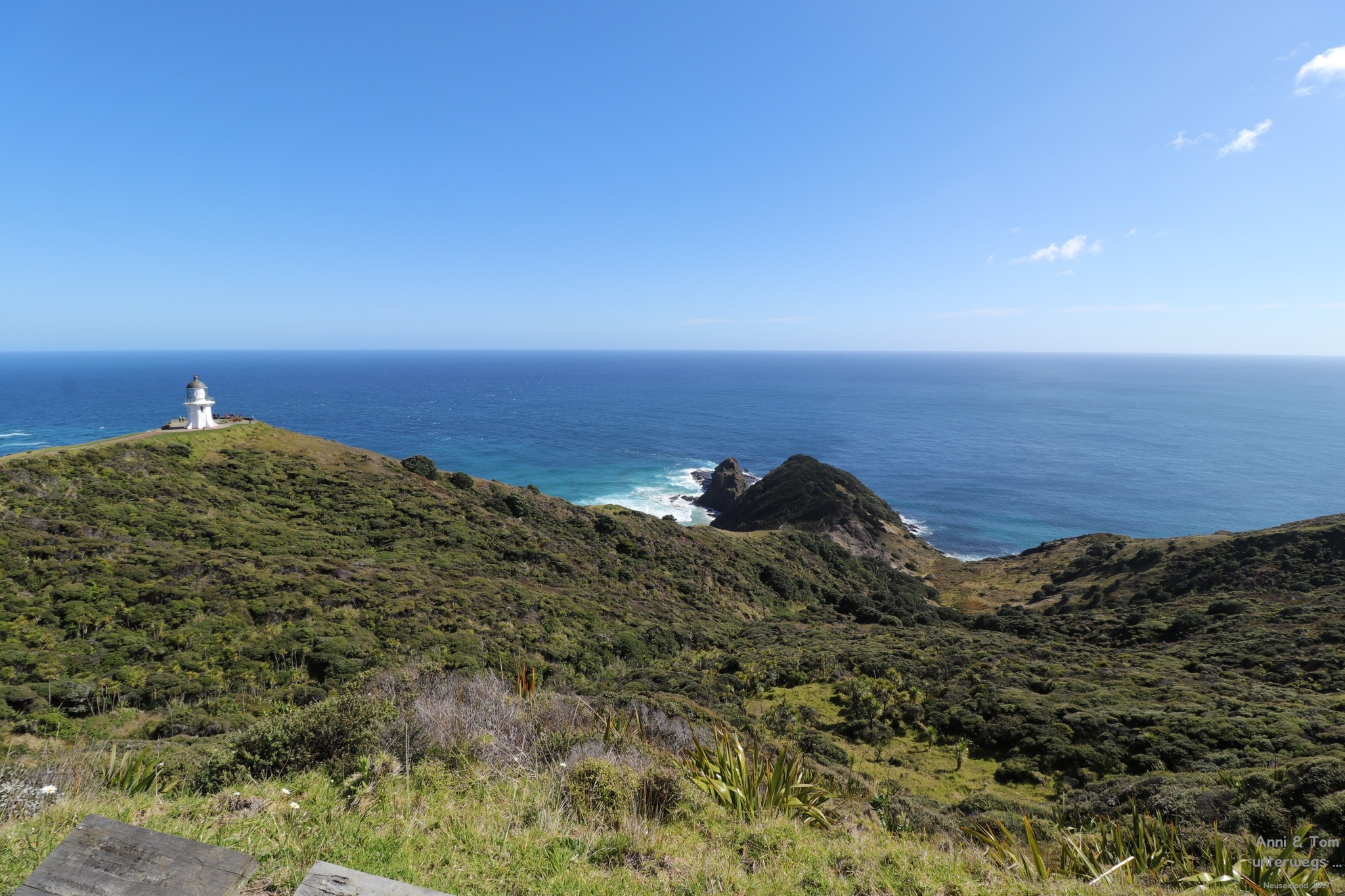 Nach dem Frühstück brechen wir auf Richtung Cape Reinga. Der Leuchtturm markiert den nördlichsten Punkt Neuseelands, dort treffen die Tasmanische See und der Pazifik aufeinander.